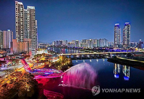 (울산=연합뉴스) 18일 울산시 중구 태화강에 조성된 '태화루(용금소) 스카이워크'에서 준공식이 개최됐다. 사진은 태화강 야경을 배경으로 고래 모형의 스카이워크가 물을 뿜는 모습. 2025.12.18 [울산시 제공. 재판매 및 DB 금지] hkm@yna.co.kr ▶제보는 카카오톡 okjebo ▶연합뉴스 앱 지금 바로 다운받기~ ▶네이버 연합뉴스 채널 구독