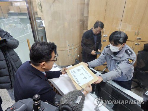 (서울=연합뉴스) 김동한 수습기자 = 김규환 전 미래통합당 의원의 대리인 장승호 씨가 22일 서울 서대문구 경찰청 민원실에서 윤영호 전 통일교 세계본부장에 대한 고소장을 제출하고 있다. 2025.12.22 moved@yna.co.kr ▶제보는 카카오톡 okjebo ▶연합뉴스 앱 지금 바로 다운받기~ ▶네이버 연합뉴스 채널 구독하기 <저작권자(c) 연합뉴스,