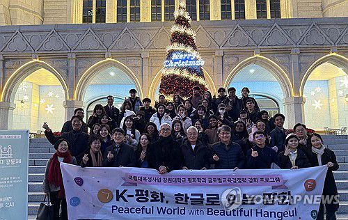 (춘천=연합뉴스) 강원대학교 평화학과는 크리스마스를 앞둔 최근 외국인 유학생들을 대상으로 '성탄 칸타타' 공연을 관람하는 뜻깊은 시간을 가졌다. 이번 행사는 평화학과가 주관하는 '한글로 잇는 평화' 서울 방문 프로그램의 하나로 마련됐다. 외국인 유학생들이 한국 사회와 도시 문화에 대한 이해를 넓히고, 평화·배려·공존의 가치를 현장에서 체험할 수 있도록 기획