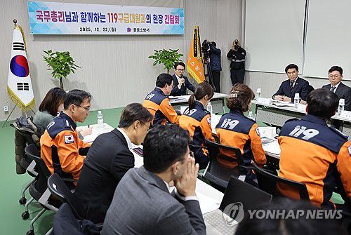 (서울=연합뉴스) 박동주 기자 = 김민석 국무총리가 22일 서울 종로소방서에서 열린 119구급대원과의 현장간담회에서 인사말을 하고 있다. 2025.12.22 pdj6635@yna.co.kr ▶제보는 카카오톡 okjebo ▶연합뉴스 앱 지금 바로 다운받기~ ▶네이버 연합뉴스 채널 구독하기 <저작권자(c) 연합뉴스, 무단 전재-재배포, AI 학습 및 활용 금지