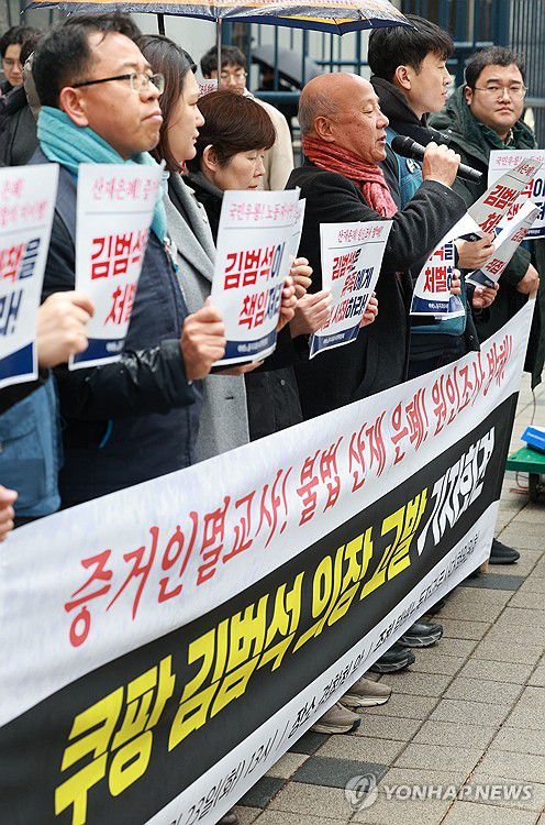 (서울=연합뉴스) 한종찬 기자 = 23일 서울 서대문구 경찰청 앞에서 택배노동자 과로사 대책위원회 회원들이 기자회견을 열고 쿠팡의 산업재해 은폐 의혹을 주장하며 창업주 김범석 쿠팡Inc 의장 처벌을 촉구하고 있다. 2025.12.23 saba@yna.co.kr ▶제보는 카카오톡 okjebo ▶연합뉴스 앱 지금 바로 다운받기~ ▶네이버 연합뉴스 채널 구독하기