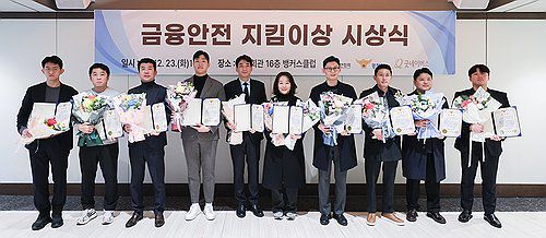 (서울=연합뉴스) 23일 서울 중구 은행회관에서 열린 '금융안전 지킴이상' 시상식에서 전기통신금융사기 예방·검거에 기여한 경찰관 10명이 표창과 포상금을 수여한 후 기념 촬영하고 있다. 2025.12.23 [경찰청 제공. 재판매 및 DB 금지] photo@yna.co.kr ▶제보는 카카오톡 okjebo ▶연합뉴스 앱 지금 바로 다운받기~ ▶네이버 연합뉴스