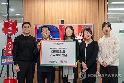 (서울=연합뉴스) 지난 23일 구세군 빌딩에서 열린 '2025 산타트리오 캠페인' 후원 물품 전달식 후 홍봉식 구세군 커뮤니케이션스국장과 양지현 세븐일레븐 ESG 전략기획팀장 등 관계자들이 기념 촬영하고 있다. 2025.12.24 [세븐일레븐 제공. 재판매 및 DB 금지] photo@yna.co.kr ▶제보는 카카오톡 okjebo ▶연합뉴스 앱 지금 바로
