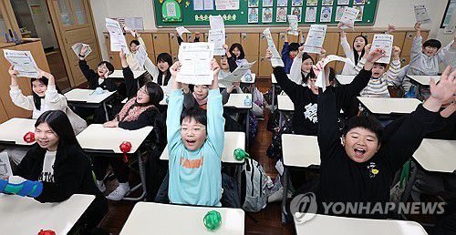(부산=연합뉴스) 강선배 기자 = 24일 부산 기장군 초등학교에서 열린 방학식에서 학생들이 겨울방학 안내문을 들고 즐거워하고 있다. 2025.12.24 sbkang@yna.co.kr ▶제보는 카카오톡 okjebo ▶연합뉴스 앱 지금 바로 다운받기~ ▶네이버 연합뉴스 채널 구독하기 <저작권자(c) 연합뉴스, 무단 전재-재배포, AI 학습 및 활용 금지> <저