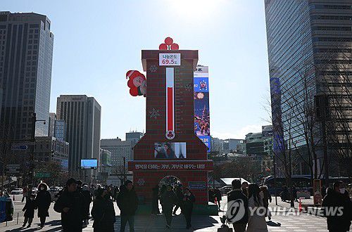 (서울=연합뉴스) 신준희 기자 = 크리스마스인 25일 광화문광장 사랑의 온도탑이 나눔온도 69.5도를 가리키고 있다. 2025.12.25 hama@yna.co.kr ▶제보는 카카오톡 okjebo ▶연합뉴스 앱 지금 바로 다운받기~ ▶네이버 연합뉴스 채널 구독하기 <저작권자(c) 연합뉴스, 무단 전재-재배포, AI 학습 및 활용 금지> <저작권자(c)연합뉴스