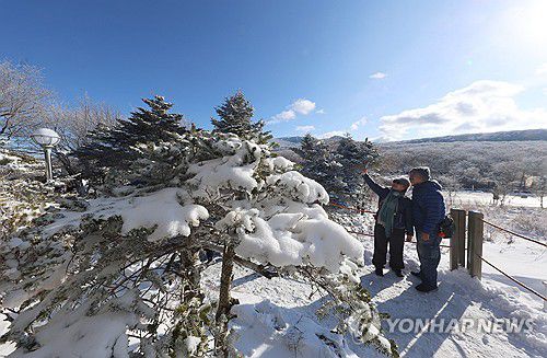 (제주=연합뉴스) 변지철 기자 = 맑은 날씨를 보인 27일 한라산 해발 1천100m에 있는 제주의 대표적인 설경 명소인 '1100고지' 휴게소 일대에 많은 관광객이 찾아 설경을 즐기고 있다. 2025.12.27 bjc@yna.co.kr ▶제보는 카카오톡 okjebo ▶연합뉴스 앱 지금 바로 다운받기~ ▶네이버 연합뉴스 채널 구독하기 <저작권자(c) 연합뉴스