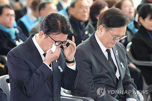 (무안=연합뉴스) 배재만 기자 = 김민석 국무총리(왼쪽)와 우원식 국회의장이 29일 전라남도 무안군 무안국제공항 여객터미널에서 열린 에서 눈물을 흘리고 있다. 2025.12.29 scoop@yna.co.kr ▶제보는 카카오톡 okjebo ▶연합뉴스 앱 지금 바로 다운받기~ ▶네이버 연합뉴스 채널 구독하기 <저작권자(c) 연합뉴스, 무단 전재-재배포, AI