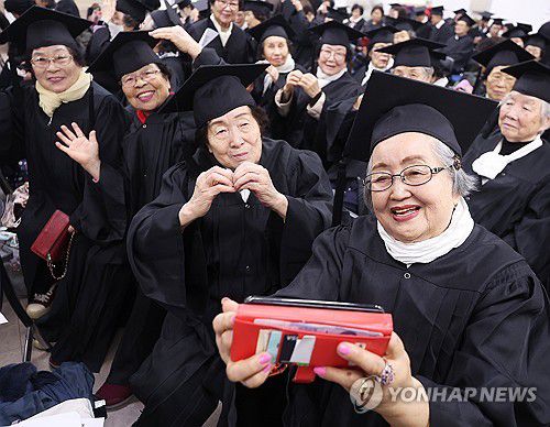 (안양=연합뉴스) 홍기원 기자 = 29일 경기도 안양시 동안노인복지회관에서 열린 '노인대학 제29기 졸업식'에서 학사모를 쓴 어르신들이 기념사진을 찍고 있다. 2025.12.29 xanadu@yna.co.kr ▶제보는 카카오톡 okjebo ▶연합뉴스 앱 지금 바로 다운받기~ ▶네이버 연합뉴스 채널 구독하기 <저작권자(c) 연합뉴스, 무단 전재-재배포, AI