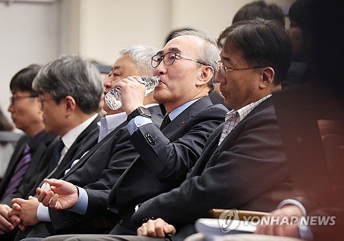 (서울=연합뉴스) 김주형 기자 = 김영섭 KT 대표이사 사장이 30일 서울 종로구 광화문 사옥에서 열린 무단 소액결제 사태 및 해킹 사고 등과 관련한 '침해사고 관련 대고객 사과와 정보보안 혁신방안' 브리핑에 입장해 물을 마시고 있다. 2025.12.30 kjhpress@yna.co.kr ▶제보는 카카오톡 okjebo ▶연합뉴스 앱 지금 바로 다운받기~ ▶