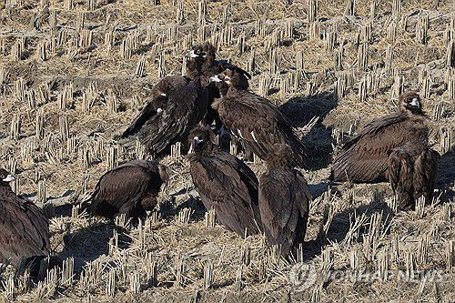 세밑 한파에 모여 있는 독수리들