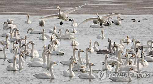 (부산=연합뉴스) 강선배 기자 = 31일 부산 사하구 을숙도 남단에서 천연기념물인 큰고니들이 청둥오리들과 어울려 먹이활동을 하고 있다. 고니는 오리과에 속하는 겨울 철새로 유라시아와 캐나다 북부 등 고위도 지역에서 번식하며, 우리나라에는 10월에서 이듬해 3월까지 주로 머문다. 2025.12.31 sbkang@yna.co.kr ▶제보는 카카오톡 okjebo