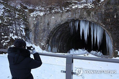 (연천=연합뉴스) 임병식 기자 = 전국에 한파가 기승을 부린 2일 경기도 연천군 경원선 폐터널에서 역고드름이 얼어 있다. 역고드름은 내부와 외부의 온도 차이로 터널에 맺힌 물방울이 떨어진 뒤 얼어 붙으면서 고드름이 나무가 자라듯이 바닥부터 올라오는 것을 말한다. 2026.1.2 andphotodo@yna.co.kr ▶제보는 카카오톡 okjebo ▶연합뉴스