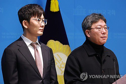 (서울=연합뉴스) 신현우 기자 = 국회 문화체육관광위원회 간사인 국민의힘 박정하 의원이 2일 국회 소통관에서 정보통신망법 개정 촉구·언론중재법 개정 추진 반대 기자회견을 하고 있다. 왼쪽은 과학기술정보방송통신위원회 소속 국민의힘 박충권 의원. 2026.1.2 nowwego@yna.co.kr ▶제보는 카카오톡 okjebo ▶연합뉴스 앱 지금 바로 다운받기~