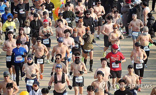 (대구=연합뉴스) 김현태 기자 = 4일 대구시 두류공원 2.28 자유 광장에서 열린 2026 전국새해 알몸 마라톤대회에서 참가자들이 힘찬 출발을 하고 있다. 2026.1.4 mtkht@yna.co.kr ▶제보는 카카오톡 okjebo ▶연합뉴스 앱 지금 바로 다운받기~ ▶네이버 연합뉴스 채널 구독하기 <저작권자(c) 연합뉴스, 무단 전재-재배포, AI 학습