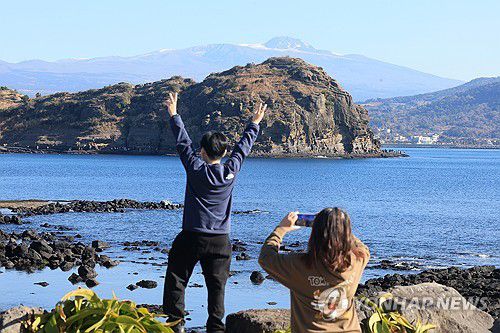 (서귀포=연합뉴스) 박지호 기자 = 화창한 날씨를 보인 9일 오전 제주 서귀포시 안덕면 사계리를 찾은 관광객이 용머리해안과 한라산을 배경으로 사진을 찍고 있다. 2026.1.9 jihopark@yna.co.kr ▶제보는 카카오톡 okjebo ▶연합뉴스 앱 지금 바로 다운받기~ ▶네이버 연합뉴스 채널 구독하기 <저작권자(c) 연합뉴스, 무단 전재-재배포, A