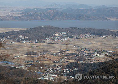 (인천=연합뉴스) 류영석 기자 = 북한이 지난 4일 인천시 강화군 송해면 하도리 일대 상공에서 북쪽방향으로 이동하는 공중목표를 포착해 개성시 개풍구역 묵산리 일대 지점으로 강제추락시켰다고 주장하는 가운데 11일 강화군에서 바라본 송해면 하도리 일대(아래)와 강 너머 북한 개풍군 일대(위) 모습. 이에 국방부는 우리 군의 작전이 아니라고 거듭 강조하며 민간