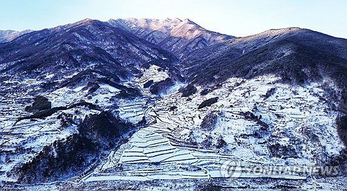 (서울=연합뉴스) 11일 지리산 자락인 경남 함양군 마천면의 다랑이 논이 하얗게 변해 있다. 2026.1.11 [함양군 제공. 재판매 및 DB 금지] photo@yna.co.kr ▶제보는 카카오톡 okjebo ▶연합뉴스 앱 지금 바로 다운받기~ ▶네이버 연합뉴스 채널 구독하기 <저작권자(c) 연합뉴스, 무단 전재-재배포, AI 학습 및 활용 금지> <저작권