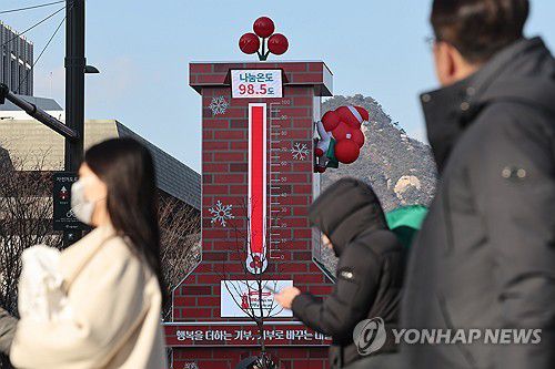 (서울=연합뉴스) 임화영 기자 = 11일 서울 종로구 광화문광장에 설치된 사랑의 온도탑에 나눔온도가 98.5도를 나타내고 있다. 2026.1.11 hwayoung7@yna.co.kr ▶제보는 카카오톡 okjebo ▶연합뉴스 앱 지금 바로 다운받기~ ▶네이버 연합뉴스 채널 구독하기 <저작권자(c) 연합뉴스, 무단 전재-재배포, AI 학습 및 활용 금지> <저