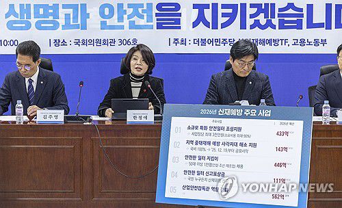 (서울=연합뉴스) 황광모 기자 = 더불어민주당 한정애 정책위의장이 12일 국회 의원회관에서 열린 산업재해 예방 TF당정, 산업안전 예산 설명회에서 인사말을 하고 있다. 2026.1.12 hkmpooh@yna.co.kr ▶제보는 카카오톡 okjebo ▶연합뉴스 앱 지금 바로 다운받기~ ▶네이버 연합뉴스 채널 구독하기 <저작권자(c) 연합뉴스, 무단 전재-재배