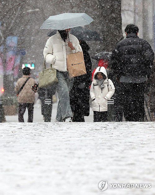 (서울=연합뉴스) 이진욱 기자 = 12일 서울 종로구 종각역 인근에서 시민들이 눈을 맞으며 이동하고 있다. 2026.1.12 cityboy@yna.co.kr ▶제보는 카카오톡 okjebo ▶연합뉴스 앱 지금 바로 다운받기~ ▶네이버 연합뉴스 채널 구독하기 <저작권자(c) 연합뉴스, 무단 전재-재배포, AI 학습 및 활용 금지> <저작권자(c)연합뉴스. 무단