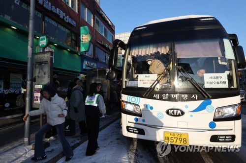 (서울=연합뉴스) 박동주 기자 = 서울 시내버스 노동조합이 첫차부터 무기한 전면파업에 돌입한 13일 서울 홍제역 인근에서 시민들이 서대문구 비상수송차량을 이용하고 있다. 2026.1.13 pdj6635@yna.co.kr ▶제보는 카카오톡 okjebo ▶연합뉴스 앱 지금 바로 다운받기~ ▶네이버 연합뉴스 채널 구독하기 <저작권자(c) 연합뉴스, 무단 전재-재