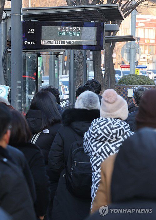 (서울=연합뉴스) 박동주 기자 = 서울 시내버스 노동조합이 첫차부터 무기한 전면파업에 돌입한 13일 서울 홍제역 인근에서 시민들이 버스를 기다리고 있다. 2026.1.13 pdj6635@yna.co.kr ▶제보는 카카오톡 okjebo ▶연합뉴스 앱 지금 바로 다운받기~ ▶네이버 연합뉴스 채널 구독하기 <저작권자(c) 연합뉴스, 무단 전재-재배포, AI 학습