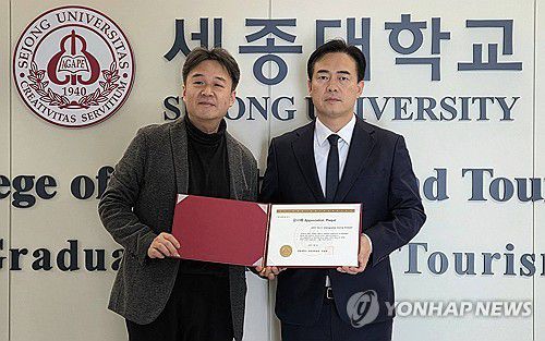 (대전=연합뉴스) 세종대 호텔관광대학은 13일 앰버서더홀에서 윤준호 한국스마트혁신기업가협회장을 객원교수로 임명하고 감사패를 전달했다고 밝혔다.2026.1.13 [한국스마트혁신기업가협회 제공. 재판매 및 DB 금지] kjunho@yna.co.kr ▶제보는 카카오톡 okjebo ▶연합뉴스 앱 지금 바로 다운받기~ ▶네이버 연합뉴스 채널 구독하기 <저작권자(c)