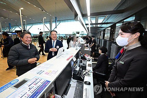 (영종도=연합뉴스) 김주형 기자 = 아시아나항공이 인천공항 제2여객터미널 운항을 개시한 14일 인천국제공항 2터미널에서 이학재 인천공항공사 사장(왼쪽)과 김성무 아시아나항공 인천공항서비스 지점장이 현장점검을 하고 있다. 2026.1.14 [공동취재] kjhpress@yna.co.kr ▶제보는 카카오톡 okjebo ▶연합뉴스 앱 지금 바로 다운받기~ ▶네이버