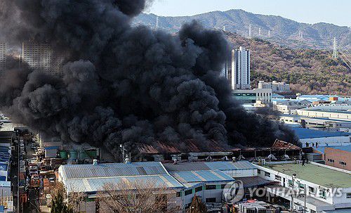 (창원=연합뉴스) 김동민 기자 = 14일 오전 10시 13분께 경남 창원시 성산구 성주동 국가산업단지 내 한 공장에서 불이 나 검은 연기가 발생하고 있다. 인명피해는 현재까지 없는 것으로 전해졌다. 2026.1.14 image@yna.co.kr ▶제보는 카카오톡 okjebo ▶연합뉴스 앱 지금 바로 다운받기~ ▶네이버 연합뉴스 채널 구독하기 <저작권자(c)