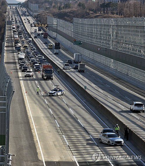 (부산=연합뉴스) 16일 경부고속도로 경남 양산휴게소 인근에서 부산경찰청 고속도로 순찰대와 유관기관이 을 하고 있다. 2026.1.16 [부산경찰청 제공. 재판매 및 DB 금지] pitbull@yna.co.kr ▶제보는 카카오톡 okjebo ▶연합뉴스 앱 지금 바로 다운받기~ ▶네이버 연합뉴스 채널 구독하기 <저작권자(c) 연합뉴스, 무단 전재-재배포, A