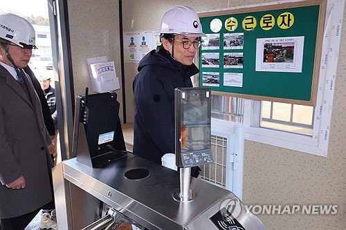 (세종=연합뉴스) 김주성 기자 = 권창준 고용노동부 차관이 19일 세종시 한국토지주택공사(LH) 공공주택건설현장을 찾아 건설 분야 임금체불 예방 방안 중 하나로 도입된 건설근로자 전자카드를 시연하고 있다. 2026.1.19 utzza@yna.co.kr ▶제보는 카카오톡 okjebo ▶연합뉴스 앱 지금 바로 다운받기~ ▶네이버 연합뉴스 채널 구독하기 <저작권