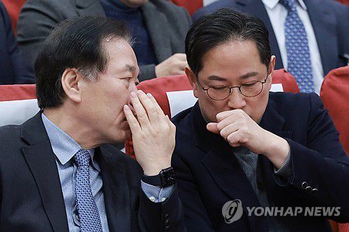 (서울=연합뉴스) 신현우 기자 = 국회 재정경제기획위원회 여야 간사인 더불어민주당 정태호·국민의힘 박수영 의원이 21일 국회의원회관에서 열린 유산기부 활성화를 위한 한국의 '레거시 텐(Legacy 10)' 제도 도입 관련 정책 토론회에 참석해 대화하고 있다. 2026.1.21 nowwego@yna.co.kr ▶제보는 카카오톡 okjebo ▶연합뉴스 앱 지금