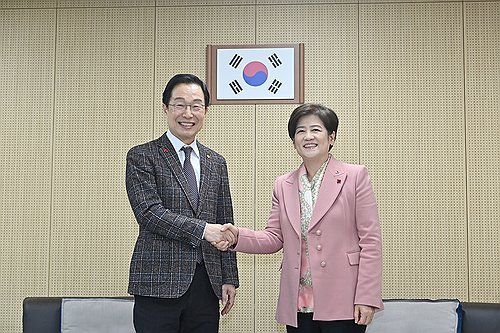 (대구=연합뉴스) 22일 오후 대구 달성교육지원청에서 임종식 경북도교육감(왼쪽)과 강은희 대구시교육감이 인사를 하고 있다. 이들은 이날 행정통합과 관련한 세부 논의를 하기 위해 회동했다. 2026.1.22 [경북도교육청 제공, 재판매 및 DB 금지] sunhyung@yna.co.kr ▶제보는 카카오톡 okjebo ▶연합뉴스 앱 지금 바로 다운받기~ ▶네이버
