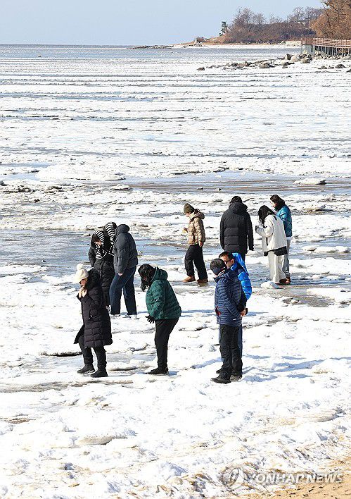 (인천=연합뉴스) 임순석 기자 = 전국에 한파가 이어진 25일 인천 강화군 동막해수욕장을 찾은 시민들이 얼어붙은 겨울 바다 정취를 즐기고 있다. 2026.1.25 soonseok02@yna.co.kr ▶제보는 카카오톡 okjebo ▶연합뉴스 앱 지금 바로 다운받기~ ▶네이버 연합뉴스 채널 구독하기 <저작권자(c) 연합뉴스, 무단 전재-재배포, AI 학습 및