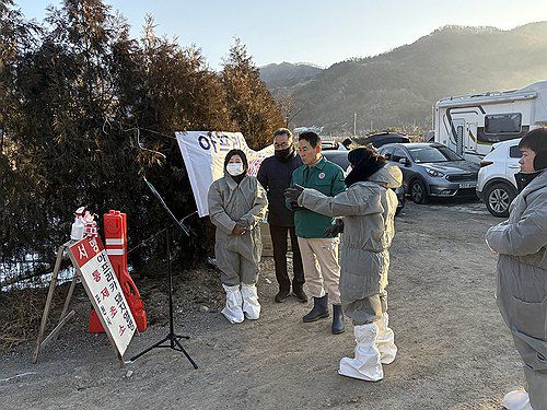 (서울=연합뉴스) 백영현 포천시장이 24일 경기도 포천시 관내 아프리카돼지열병(ASF)이 확진 농장을 방문해 방역상황 등을 점검하고 있다. 2026.1.25 [포천시 제공. 재판매 및 DB 금지] photo@yna.co.kr ▶제보는 카카오톡 okjebo ▶연합뉴스 앱 지금 바로 다운받기~ ▶네이버 연합뉴스 채널 구독하기 <저작권자(c) 연합뉴스, 무단 전