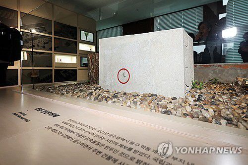 (광주=연합뉴스) 정다움 기자 = 24일 오전 광주 동구 옛 전남도청에서 열린 문화체육관광부 옛전남도청복원추진단의 시범운영 설명회에서 참가자들이 계엄군의 탄두가 박힌 전시물을 보고 있다. 5·18 민주화운동 최후항쟁지이자 2023년 하반기 복원 공사가 시작된 옛 전남도청은 오는 28일 한 달여간 시범 운영을 거친 뒤 오는 5월 개관할 예정이다. 2026.2