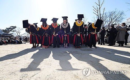 (서울=연합뉴스) 김인철 기자 = 25일 서울 종로구 성균관대학교 비천당 앞에서 졸업생들이 학위수여식 고유례(告由禮)를 지내고 있다. 2026.2.25 yatoya@yna.co.kr ▶제보는 카카오톡 okjebo ▶연합뉴스 앱 지금 바로 다운받기~ ▶네이버 연합뉴스 채널 구독하기 <저작권자(c) 연합뉴스, 무단 전재-재배포, AI 학습 및 활용 금지> <저