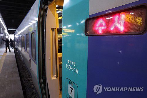 (부산=연합뉴스) 손형주 기자 = 25일 오후 부산 동구 부산역에 수서행 KTX에 승객이 탑승하고 있다. 국내 양대 고속철도인 KTX와 SRT의 통합을 앞두고 KTX 철도차량을 수서역에, SRT 철도차량을 서울역에 투입하는 시범 교차운행이 이날부터 시작됐다. 시범 교차 운행 기간 KTX는 수서역∼부산역을, SRT는 서울역∼부산역을 매일 각 1회 왕복 운행한
