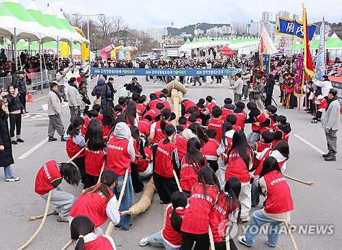 (삼척=연합뉴스) 27일 강원 삼척시 엑스포 광장 기줄다리기 마당에서 '2026 삼척 정월대보름제' 행사로 시민들이 참여한 기줄다리기 행사가 진행되고 있다. 삼척 정월대보름제는 '으랏차 심척기줄, 전통을 당겨 미래로'를 주제로 27일부터 3월 3일까지 열린다. 2026.2.27 [삼척시 제공. 재판매 및 DB 금지] yoo21@yna.co.kr ▶제보는 카