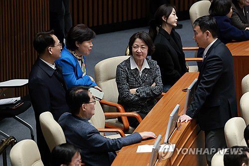 (서울=연합뉴스) 신현우 기자 = 국회 법제사법위원장인 더불어민주당 추미애 의원이 28일 국회에서 열린 2월 임시국회 8차 본회의에서 법사위 여당 간사 김용민 의원, 법사위원인 서영교·박지원 의원과 대화하고 있다. 2026.2.28 nowwego@yna.co.kr ▶제보는 카카오톡 okjebo ▶연합뉴스 앱 지금 바로 다운받기~ ▶네이버 연합뉴스 채널 구독