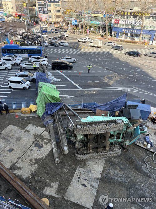 (대구=연합뉴스) 김현태 기자 = 4일 오전 대구 수성구 만촌네거리 도시철도 2호선 만촌역 지하통로 공사 현장에 천공기가 쓰러져 있다. 이 사고로 천공기 기사와 택시 기사, 승객 등 3명이 다친 것으로 알려졌다. 2026.3.4 mtkht@yna.co.kr ▶제보는 카카오톡 okjebo ▶연합뉴스 앱 지금 바로 다운받기~ ▶네이버 연합뉴스 채널 구독하기 <