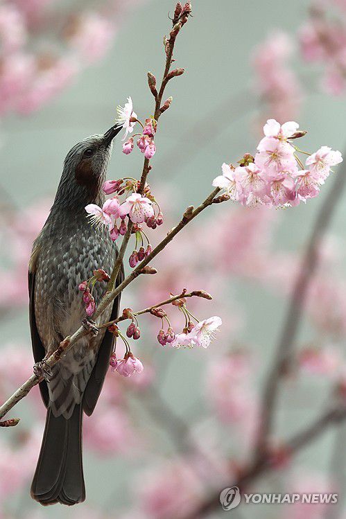 (부산=연합뉴스) 강선배 기자 = 한때 비가 내리고 흐린 날씨를 보인 6일 오전 부산 연제구의 한 도로변에 벚꽃이 활짝 핀 가운데 직박구리가 꿀을 따먹고 있다. 2026.3.6 sbkang@yna.co.kr ▶제보는 카카오톡 okjebo ▶연합뉴스 앱 지금 바로 다운받기~ ▶네이버 연합뉴스 채널 구독하기 <저작권자(c) 연합뉴스, 무단 전재-재배포, AI
