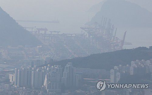뿌옇게 보이는 부산항 신선대 부두