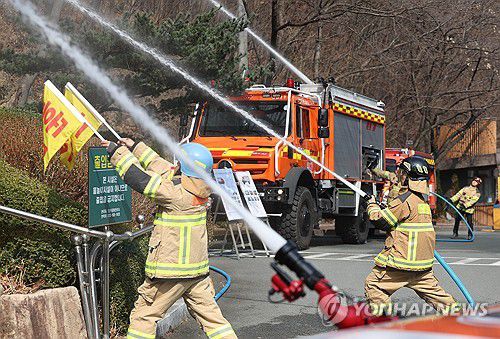 (대구=연합뉴스) 김현태 기자 = 대형산불 특별대책 기간인 16일 대구 앞산 공원에서 산불 진화용 차량이 출동해 진화 훈련을 하고 있다. 2026.3.16 mtkht@yna.co.kr ▶제보는 카카오톡 okjebo ▶연합뉴스 앱 지금 바로 다운받기~ ▶네이버 연합뉴스 채널 구독하기 <저작권자(c) 연합뉴스, 무단 전재-재배포, AI 학습 및 활용 금지> <