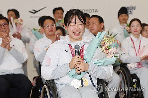 (영종도=연합뉴스) 박동주 기자 = 17일 인천국제공항 2터미널에서 열린 밀라노·코르티나담페초 동계 패럴림픽 한국 선수단 입국 환영ㆍ해단식에서 대회 MVP에 선정된 김윤지가 소감을 말하고 있다. 2026.3.17 pdj6635@yna.co.kr ▶제보는 카카오톡 okjebo ▶연합뉴스 앱 지금 바로 다운받기~ ▶네이버 연합뉴스 채널 구독하기 <저작권자(c)