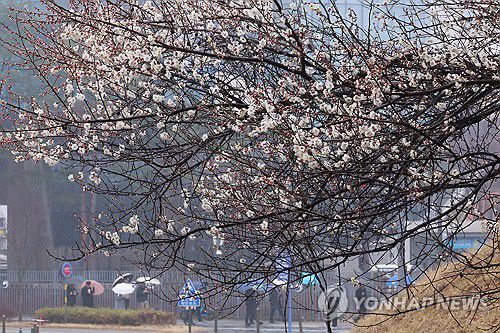 (세종=연합뉴스) 김주성 기자 = 봄비가 내린 18일 세종시 정부세종청사 인근 동산에 매화가 피어 있다. 2026.3.18 utzza@yna.co.kr ▶제보는 카카오톡 okjebo ▶연합뉴스 앱 지금 바로 다운받기~ ▶네이버 연합뉴스 채널 구독하기 <저작권자(c) 연합뉴스, 무단 전재-재배포, AI 학습 및 활용 금지> <저작권자(c)연합뉴스. 무단전재-