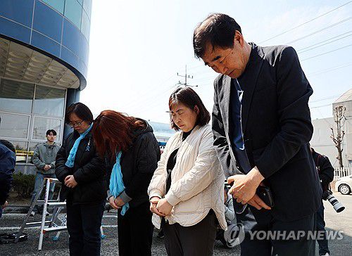 (대전=연합뉴스) 이주형 기자 = 2024년 6월 발생한 일차전지 업체 아리셀 공장 화재 참사 대책위·유족 대표들이 23일 대전 대덕구 문평동 소재 안전공업 주식회사 화재 참사 현장을 찾아 묵념하고 있다. 2026.3.23 coolee@yna.co.kr ▶제보는 카카오톡 okjebo ▶연합뉴스 앱 지금 바로 다운받기~ ▶네이버 연합뉴스 채널 구독하기 <저작