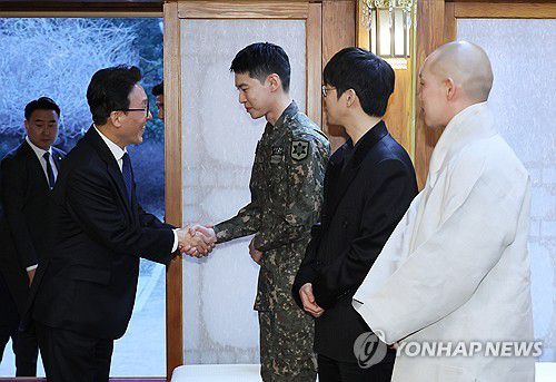 (서울=연합뉴스) 이정훈 기자 = 김민석 국무총리가 23일 서울 종로구 삼청동 총리공관에서 열린 생명대사 및 천명수호처 만찬간담회에 참석하며 NCT 도영 등 참석자들과 인사를 나누고 있다. 2026.3.23 uwg806@yna.co.kr ▶제보는 카카오톡 okjebo ▶연합뉴스 앱 지금 바로 다운받기~ ▶네이버 연합뉴스 채널 구독하기 <저작권자(c) 연합뉴