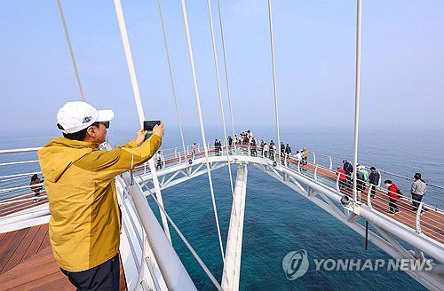 (삼척=연합뉴스) 25일 준공된 강원 삼척시의 새로운 관광명소인 '삼척 해상스카이워크'에서 시민과 관광객들이 투명 유리데크 위에서 바다 위를 걷는 듯한 색다른 체험을 하고 있다. 2026.3.25 [삼척시 제공. 재판매 및 DB 금지] yoo21@yna.co.kr ▶제보는 카카오톡 okjebo ▶연합뉴스 앱 지금 바로 다운받기~ ▶네이버 연합뉴스 채널 구독