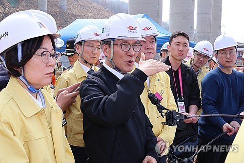 (천안=연합뉴스) 김주성 기자 = 김민석 국무총리가 27일 지난해 2월 교량 붕괴사고로 사상자가 발생했던 세종-포천고속도로 천안 안성간 청용천교 건설 현장을 방문해 복구 현황과 안전관리 실태 등을 점검하고 있다. 2026.3.27 utzza@yna.co.kr ▶제보는 카카오톡 okjebo ▶연합뉴스 앱 지금 바로 다운받기~ ▶네이버 연합뉴스 채널 구독하기